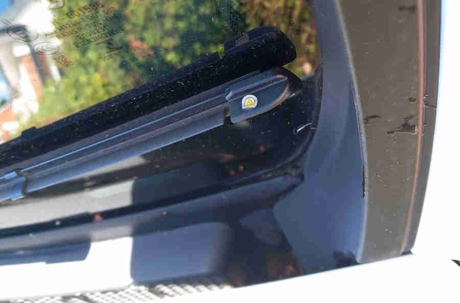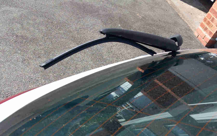 The rear on mine is different to the one shown in the above video, it doesn't come away from the screen anywhere near as much. The handbook blithely says to "Fold the wiper arm away from the rear window until it engages in the replacement position" but gives no indication that it also (like the front clips) requires quite a bit of force, enough to make we wonder if I was going to break it. The video talks of two clips that have to be squeezed together to release the blade, but mine has two pegs on the sides of the blade which push into cut-outs in the arm. As such that could well be easier than the clips, just push (or pull) the blade towards the glass away from the arm and clip the new one in, it goes either way round. While trying to get it into the 'replacement' position the cover over the fixing nut cover started to slide so I have included pictures of that as well.