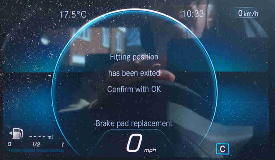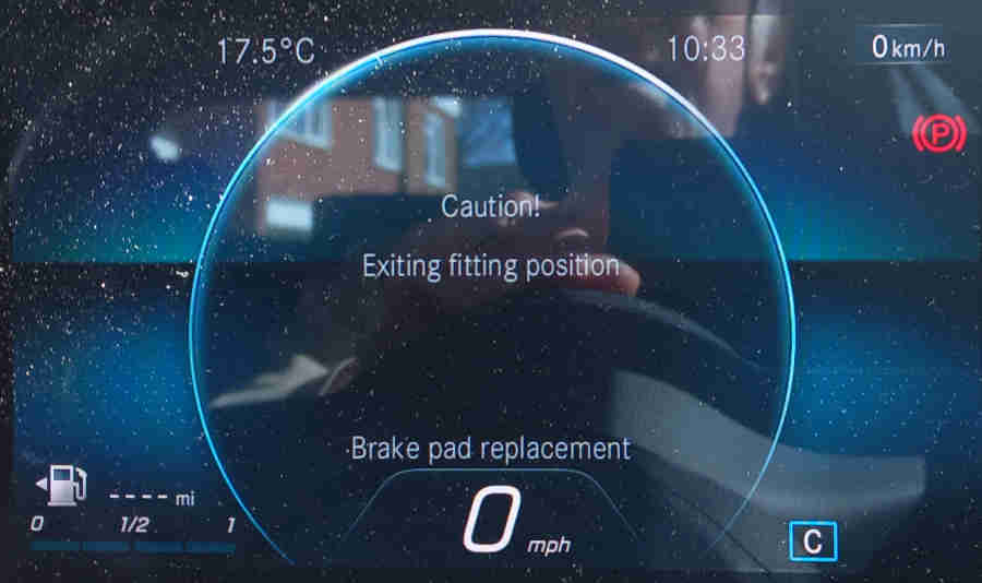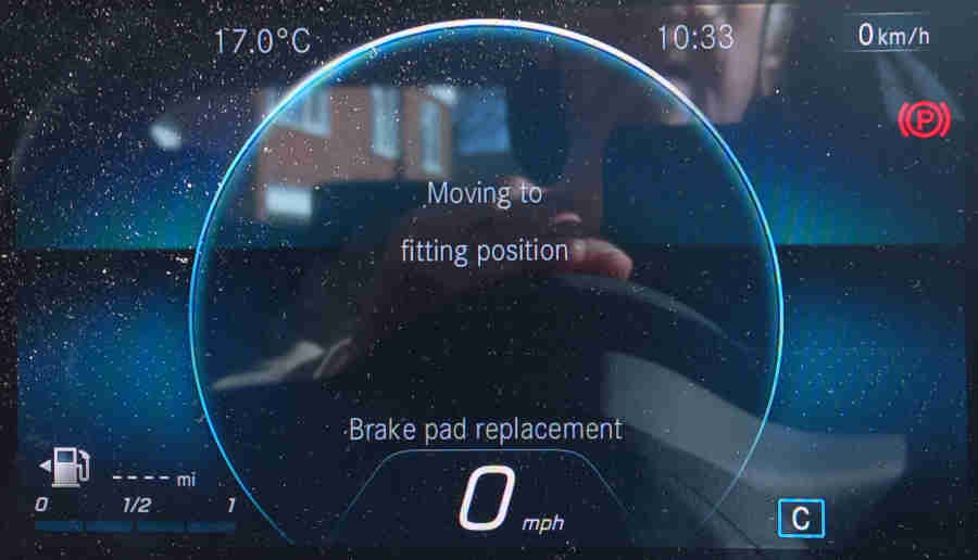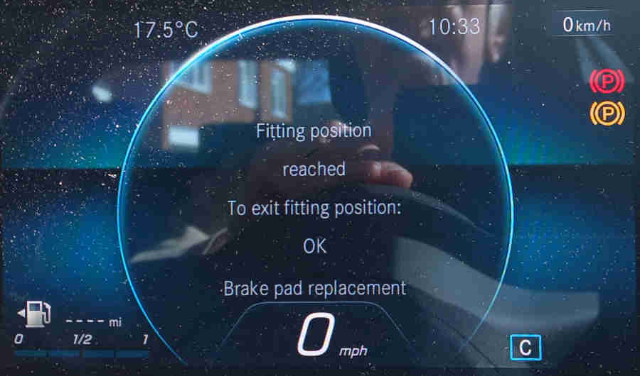 When the process is complete you will see 'Fitting position reached', the parking brake icon continues to flash: