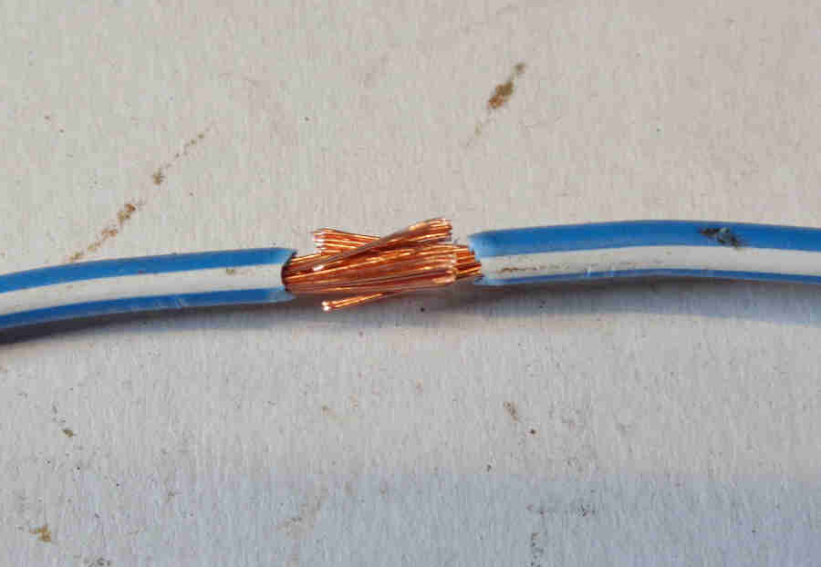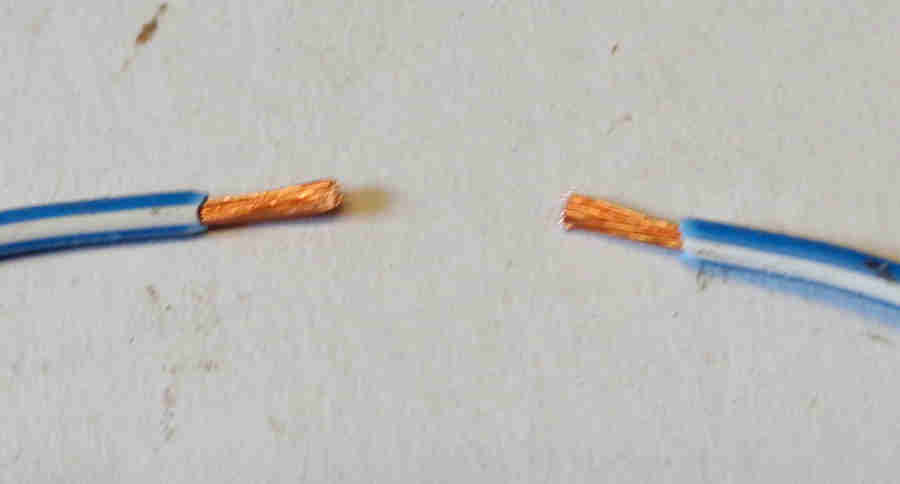 Brass 'staple' crimped round the wires and soldered ...