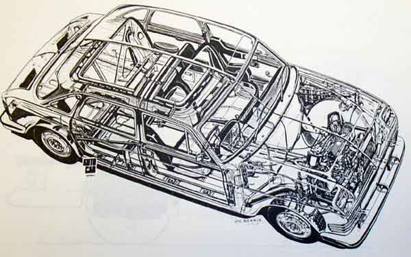 The Marina-based SRV2 featured many innovative ideas with the emphasis on minimizing the consequences of frontal impacts. It was claimed that the car was capable of safely absorbing the energy of an impact at speeds up to 40mph, while its low nose featuring retractable headlamps was designed to minimise the injuries incurred by pedestrians.