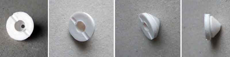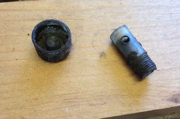 The insert. The small hole visible in the first image is actually too small to allow water that might be sitting in the insert to run through to the axle. Of course, if the axle is hot, and has run through water, any sitting there will be sucked in as the axle cools. The slots across the top allow air to pass between the insert and the cap: