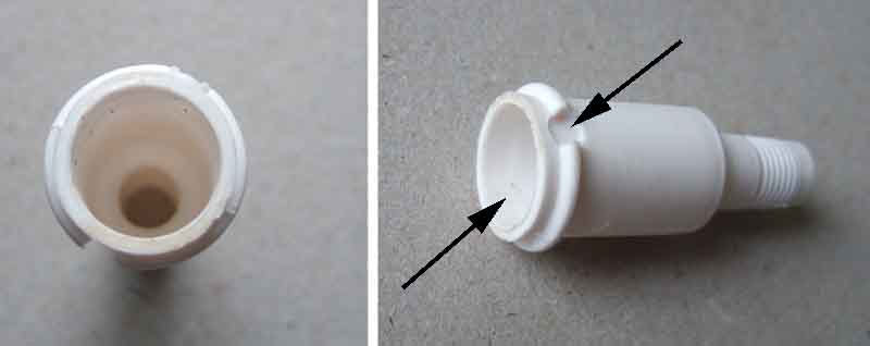 Whilst the body has indentations (arrowed), they are not pierced as in the earlier breather. Together with the cut-outs in the ring around the body (which the cap snaps onto), they allow air to pass between the cap and the body:
