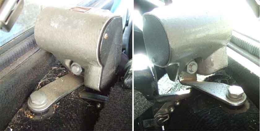 A Pal's 72 roadster, albeit nearer the early static position rather than the later inertia position. Bolt head inside the cabin is neater, but nut and threads inside the cabin will keep them free from corrosion!