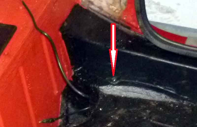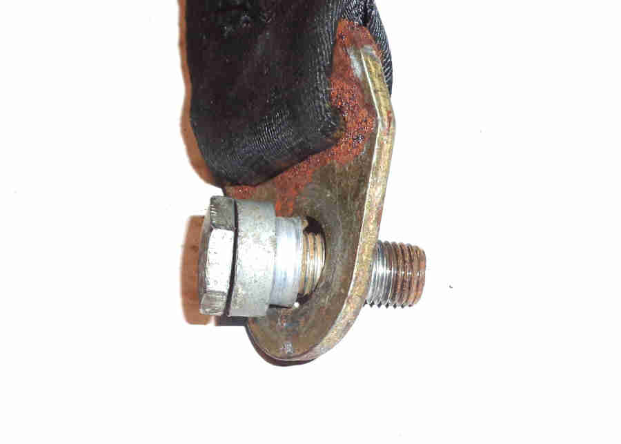 The bolts go into a welded nut under the rear deck - with bolt 'G' fitted here. That was to prevent water ingress until I discovered the plugs in the next image: