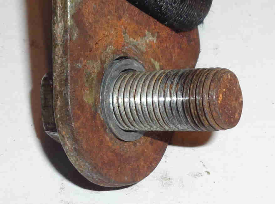 It took quite a bit of searching to find suitable bolts, out of the main MG suppliers only Rimmer Bros seem to list them. Seat belts are hidden under 'Accessories' and 'Interior styling', that only lists full kits, but then I spotted some fittings hidden even more determinedly under 'Door seals and trim fittings'! Still not plain bolts though, just the special fitting for the detachable shoulder belt that mounts on the rear tonneau panel of roadsters at £42. More Googling was needed before I found the bolts at £2 under Triumph Spitfire: (Rimmer Bros)