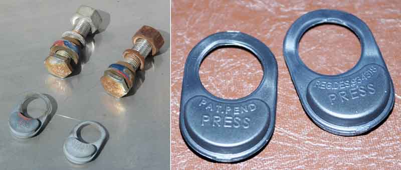 May 2018: If that wasn't enough, someone was asking about plastic slotted blanks that filled the holes in the tonneau cover when the quick-release system wasn't being used. I couldn't see why plugs of that type would be used in the cover, but it struck me that they may have been used to cover the holes in the tonneau panel itself. I had an idea I had one kicking around somewhere, in one of my many boxes of bits, that probably came off our Mini in the late 60s when my future father-in-law 'suggested' I fit seat belts ... And so it proved to be. A bit more research came up with these RFN207 'grommets', which some suppliers do show as a conventional grommet instead of this plug, others show then as 24K6821 blanking plug.