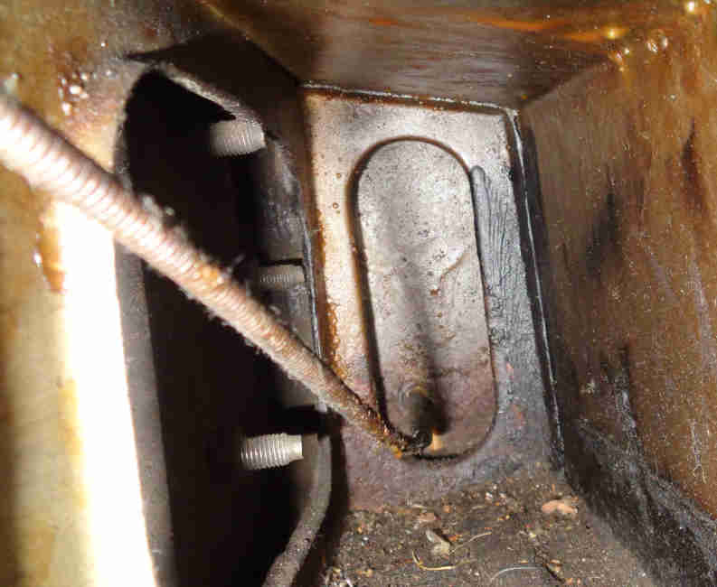 Rear-most of three P-clips securing the cable, should really be a shorter bolt with a jam-nut: