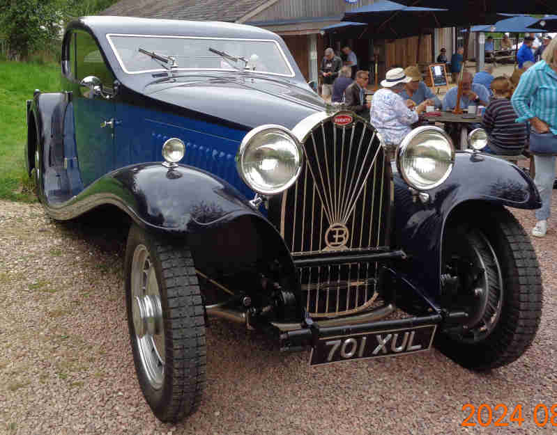 Glorious Type 46. The story from the commentators was this car was found bodyless in the 1970s in France walled up since the Nazis occupied the country, and a very long time since deciding what body to fit and raising the money for it. The registration appears genuine as it can be found on the DVLA site described as