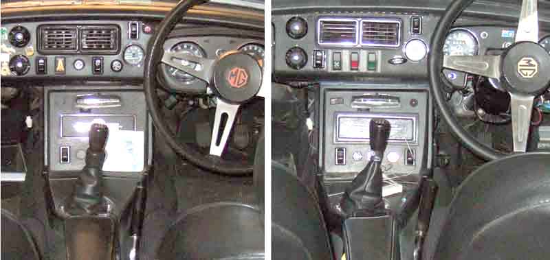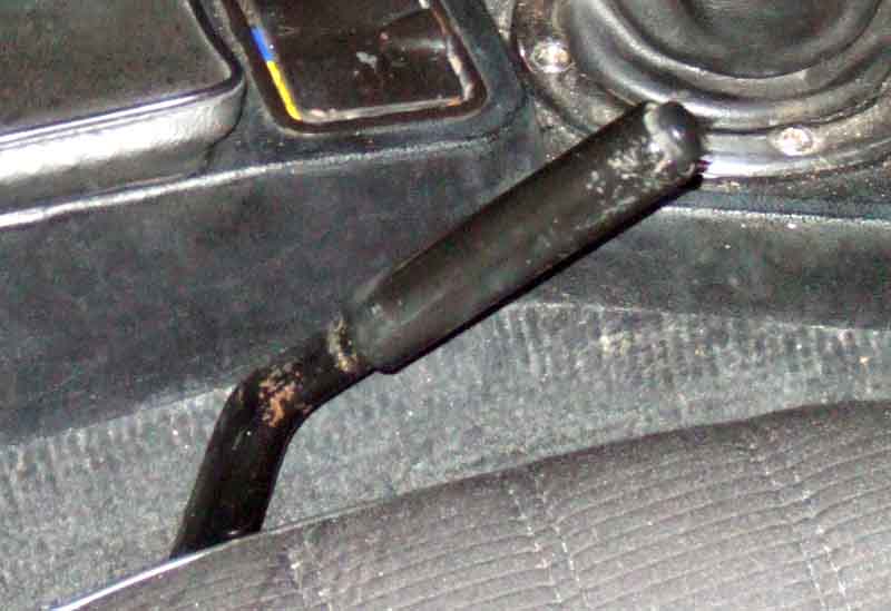 A 73 cranked to the right to clear the tunnel console, changing at chassis number 258001 for the 1972 model year, albeit on an LHD: (Clausager)