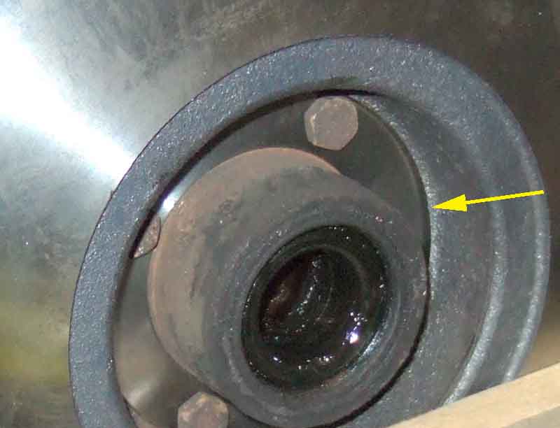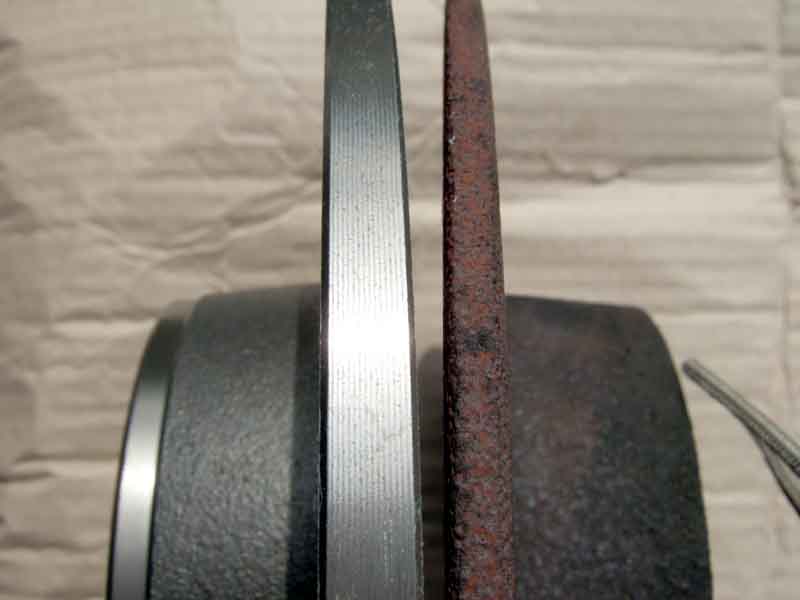 My pal's original disc with significantly greater clearance, enough for a socket to fully seat. This is cast differently as the rough wall of the well goes straight down almost to the machined face, so very little machining, and what there is goes right out to the wall.