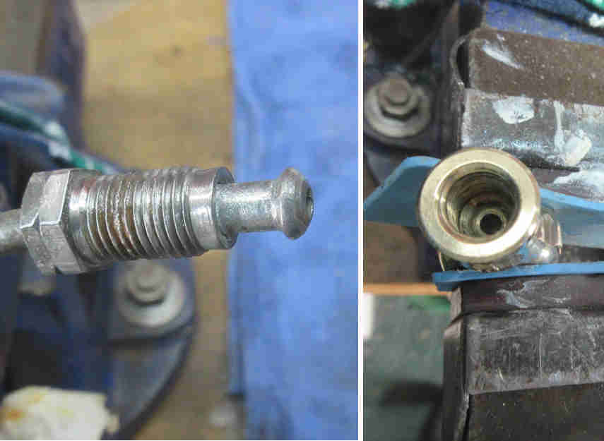 Brake master - pipe has a bubble flare so the centre of the banjo narrows as it moves away from you: (Brendan H)