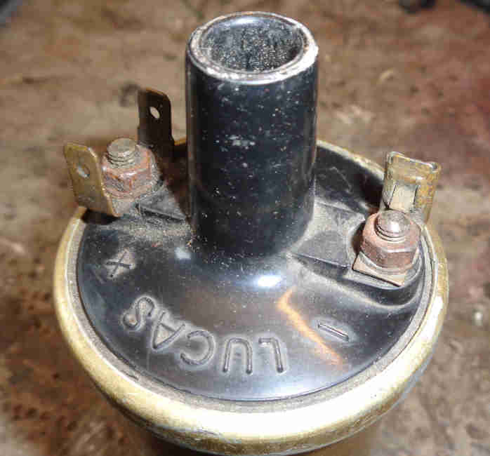 Should the coil point up or down? January 2011 From time to time this question crops up, and there are various comments about oil-filled coils being used pointing downward so the oil cools the HT connection. On one recent discussion someone who should know better roundly castigated everyone saying they should read the Workshop Manual, because the answer is in there, when it isn't - directly at least. What is in the WSM that is interesting is a description of a test-rig, where it says the coil must be mounted at 45 degrees, with the CB terminal uppermost, so that it's internal connection is not covered with fluid and any internal tracking between the iron core and the primary lead will be revealed. One would have to know that oil is used in HV systems to resist tracking (a spark will jump an air-gap more readily than it will jump an oil-filled gap) to work out that if the CB internal connection must be uncovered during testing to reveal any faults, then it should be covered in use to resist any tracking developing. Thus, the coil when mounted on the inner wing of 4-cylinder cars or radiator mounting panel of V8s should point downwards. Early MGBs (possibly just 3-bearing) have the coil mounted horizontally to the engine, so perhaps the terminals of the coil should be vertical with the CB (-ve for later coils) in the lower position. Again I have seen a claim that Bosch oil-'filled' coils should be mounted terminals uppermost or they leak when they get hot! Seems very unlikely to be correct, on several levels. Incidentally engine-mounted coils will get hotter than inner-wing mounted coils, as they will be picking-up significant mechanical heat as well as electrical. Which brings me on to:
