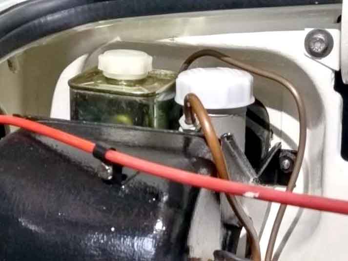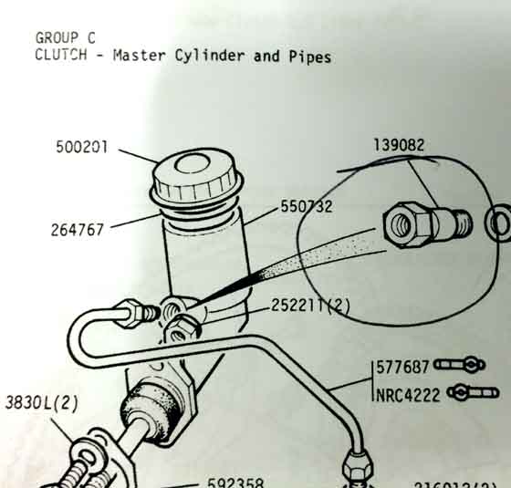 Clearly the problem lies with the master cylinder design. Taking a close look at the master cylinders in the early MGBs, there is very little room in the pedal box, the brake master cylinder takes up most of the room. It looks like MG had to use the thinnest reservoir clutch master available, and even then, they couldn't mount it straight (see the slanted mounting flange). On later cars with servo there is more room, but they kept with the Lockheed cylinder.