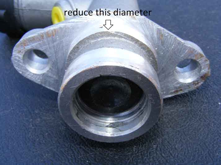 Although I used the old push rod from the old MC (as the clutch instructions) what I did not see (until it was too late) was that the overall length from the pedal box to the pedal was very slightly longer, thus it locked the brakes on. This was overcome by grinding down the edge of the pedal and inserting spacers on the MC.
