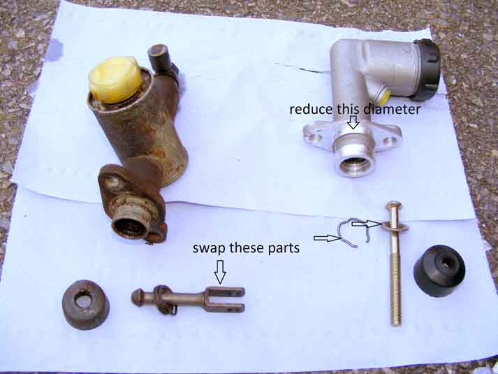Just swap the push rod, circlip and the retaining washer (this needs to have a notch cut out to be fitted onto the push rod):