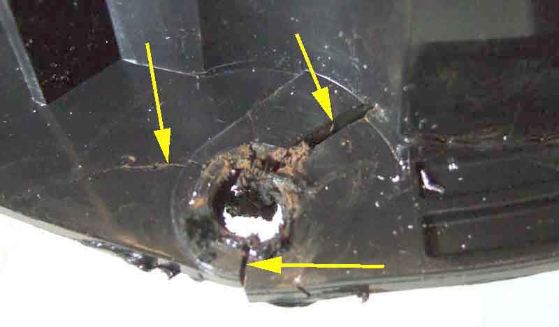 Typical cracks on my speaker, the one upper right allows water past the seal: