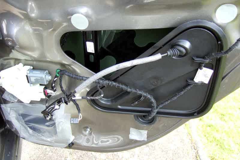 Put it all back together after pouring much water over the glass and nothing coming through. That night heavy rain, checked next morning and dry. Checked the other three doors to find this at the driver's side passenger door, so that trim has to come off as well: