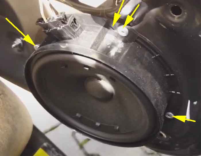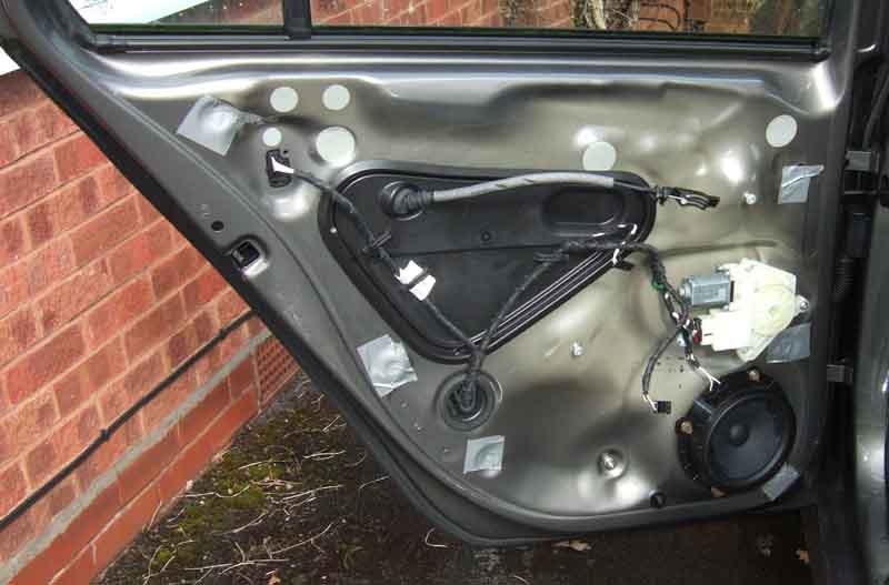 Driver's side rear speaker similar to the passengers done first. The loose strip of sponge seal at the bottom was hanging down when I removed the door trim:
