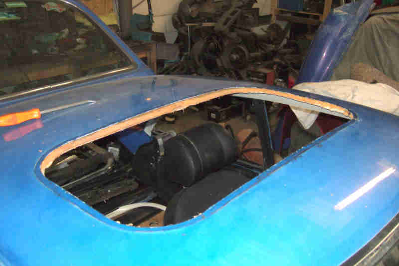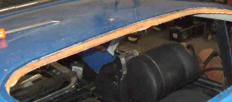 75 V8 with compressed orange 'fluff' insulating material stuck to card with vinyl covering, which floats on the cant rails: