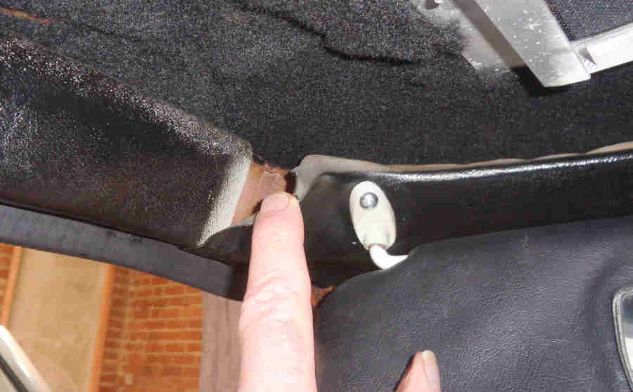 But Geoff's 78 front cant rail has a rigid pre-formed black plastic cover with the roof structure underneath as can be seen through the fixing hole for the sun visor: