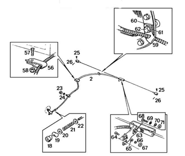 Decades later and I've just noticed that Vee's cable trunnion is the other way round to Bee's, putting the end of the outer away from the viewer on Bee and towards the viewer on Vee - I've changed both at various times. Pictures elsewhere show it both ways, but as Vee it allows the outer to drop away from the short cable as it goes under axle, whereas the other way round they can rub together.