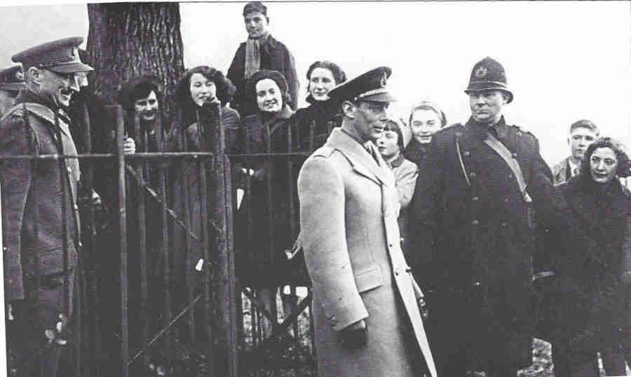 The photo of the King leaving the 'rec' shows from left to right Vera Williams, Joan Chapman, Ken Evans, Mrs Wheeler, Dorothy Hunt, Bet Wheeler, Joan Herring. unknown, unknown, John Thurson and Sylvia Burton (nee' Haines):