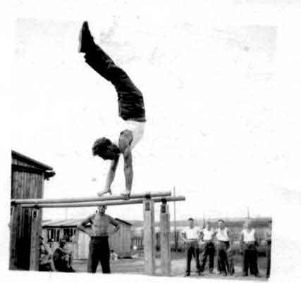 The following pictures were sent to me by Ian Martin and from a set of about 50 that belonged to his Father, John 'Jock' Martin of Stirling, Scotland. In the first picture Ian's Father is in the centre holding the newspaper, believed to be a copy of 'The Camp'.