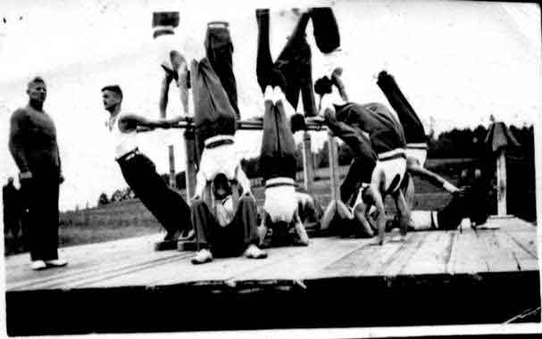 These pictures are from Ed Webster, his father was in the gymnastics team. There are interesting similarities between the first picture in Kerry Single's set and the first in Ed's: