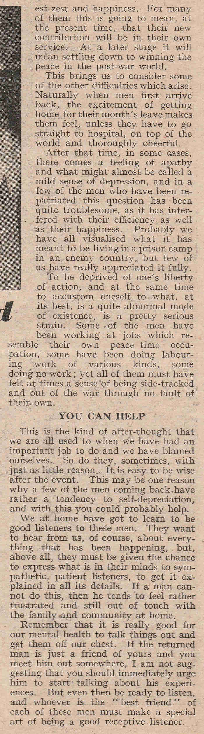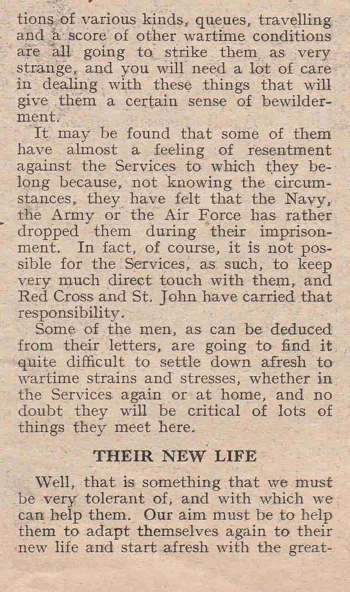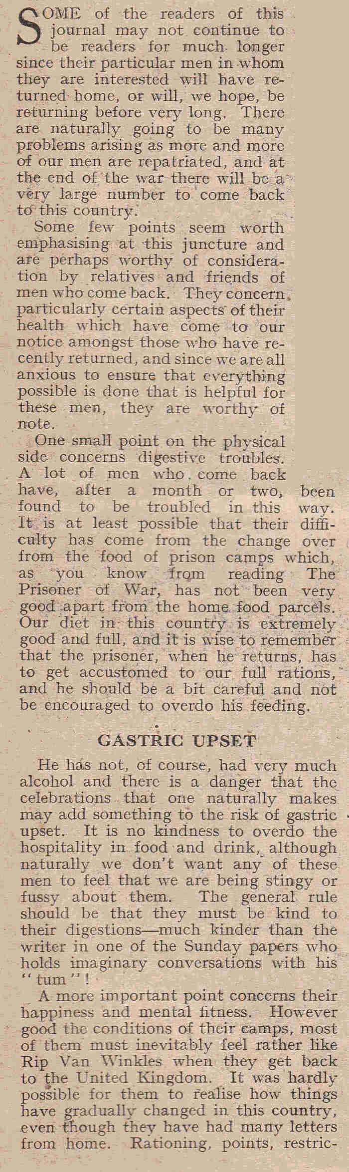 Even in 1943 thoughts of the authorities were on returing POWs: