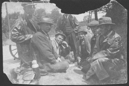 The chap seated on the left nearest the camera could well be Harry's Father. Harry told me that in those days a gang would collect their hand-cart and a weeks work from the depot on a Monday morning, walk off into the country side erecting a pole route, and not get back home again until the weekend. Harry's Father's ganger (foreman) had a glass eye. When in the pub he would drop his glass eye in his pint with the words "Keep an eye on that for me" before he went out the back to relieve himself. On another occasion he convinced his gang that he had lost his eye at the bottom of a hole where they had just erected a pole and back-filled, then when they had dug it all out again announced "Oh, here it is in my pocket".