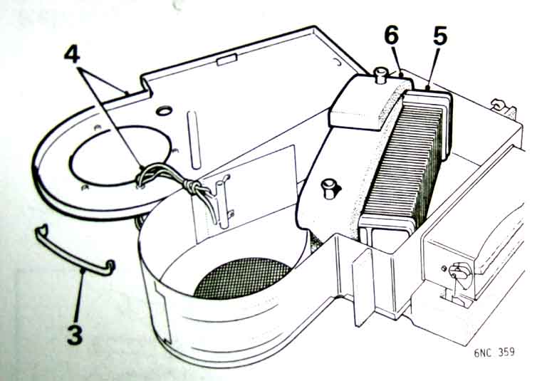 By cutting across the cover immediately below the bigger flange that screws the heater down onto the bulkhead shelf (red arrows), the cover can be removed with the heater unit in-situ. One corner of the matrix is still tucked down into the bulkhead shelf slot, and there are parts of the main case that look as if the matrix can only be withdrawn straight forwards. Presumably it can be fiddled out otherwise people wouldn't do the mod, although I don't think I've ever read of someone subsequently needing to remove the matrix to prove it! The cut-off piece should be pop-riveted to the main case, and ideally a small strip across the bottom of the main cover that will go down into the bulkhead shelf slot in lieu of that part of the original cover, to maintain the sealing so that all the heated air passes into the cabin and doesn't leak out into the engine bay. If you are desperate and need to change the matrix without removing the heater it's said that you can fold the cover down, presumably far enough to clear the matrix tubes, but that would seem to allow even less space for the matrix to be wiggled out past the location pieces in the main case. The other thing cutting the cover allows is to fit an uprated impeller to the motor, which is said to be bigger than the hole in the cover unlike the standard impeller, as well as to be able remove the motor with the larger impeller: