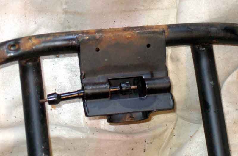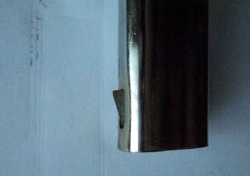 Same spring-clip inside the restraint tube, but in this case with the upper edge having a slight downwards angle it was easy to tap it up inside the seat tube with a hammer and wood drift: