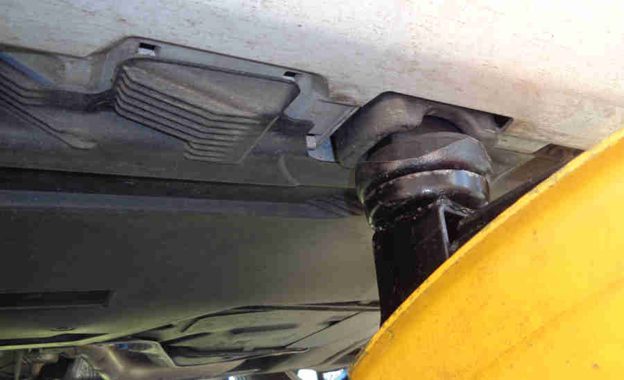 However it needs 175mm clearance under the car but there is only 150mm available at the rear and 118mm at the front so the car would need to be driven onto something to raise it about 1" at the rear but more than 2.5" at the front to slide jack with adapter under: