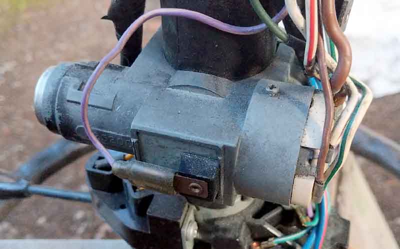 One of two North American 1973 cars where the warning buzzer sounds if the steering is not yet locked, even though the key has been removed. Different to the one above, this one has the connection inline with the locking pin, instead of at the side of the lock. The wiring is otherwise the same: (Arthur Taylor)