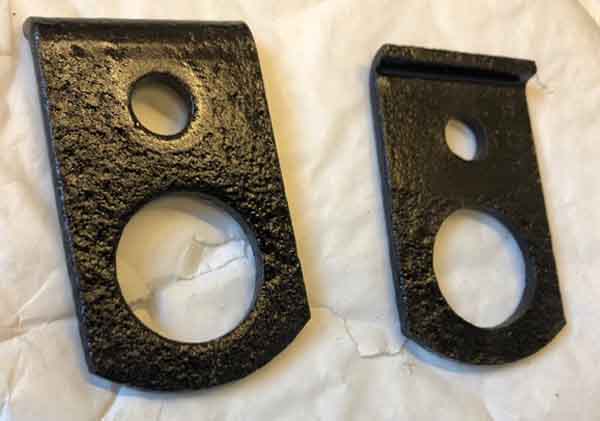 Clausager says that lashing brackets were added to the rear of export cars at chassis number 107465 in November 66. Perhaps unsurprisingly Bee doesn't have them - although she does have the front ones, maybe they were used when being transported to dealers. These next two pictures of the brackets were posted on the MG Enthusiasts forum. Some apparently flat: (Dave O'Neil)