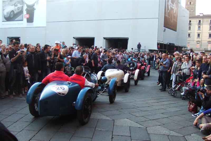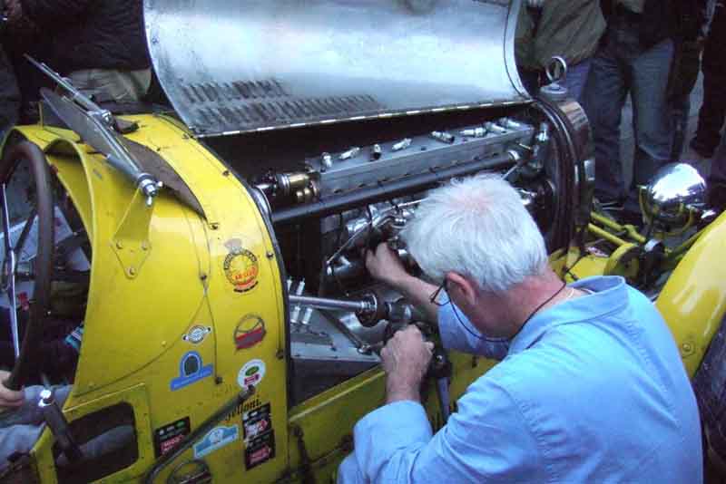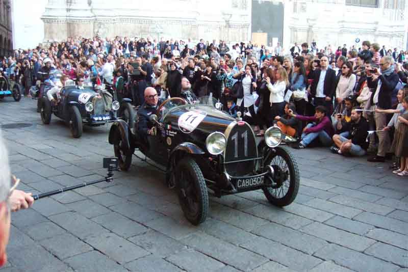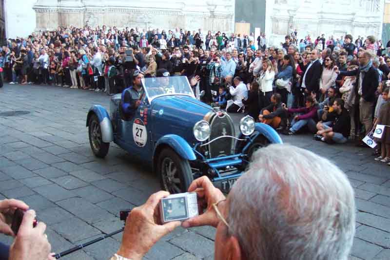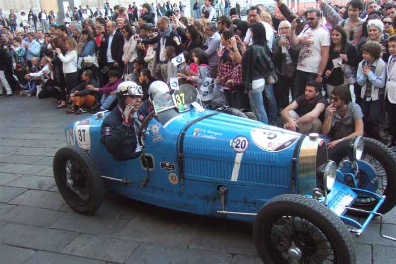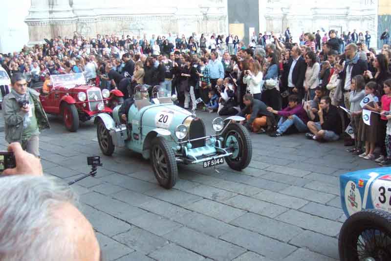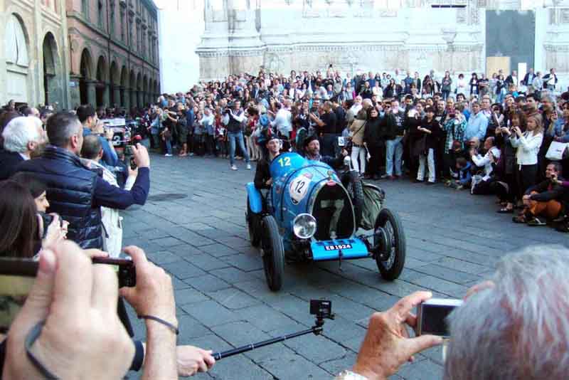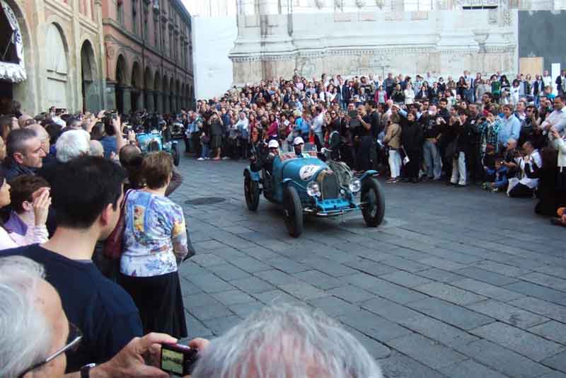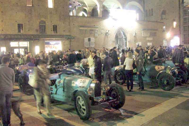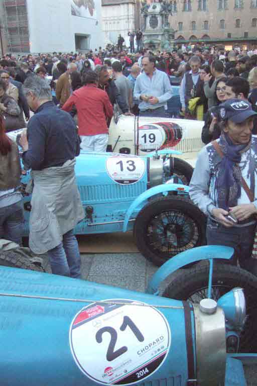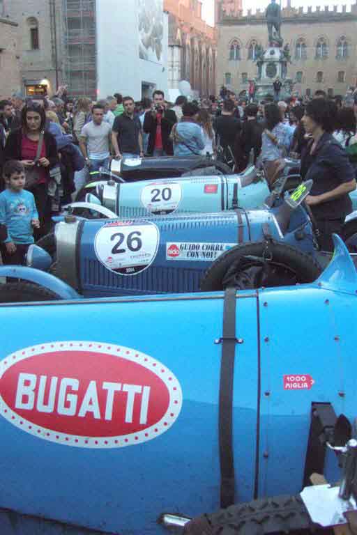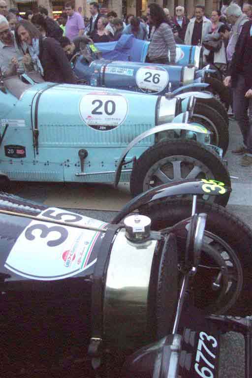 Arrival in Bologna, all the Bugattis came in pretty-well together