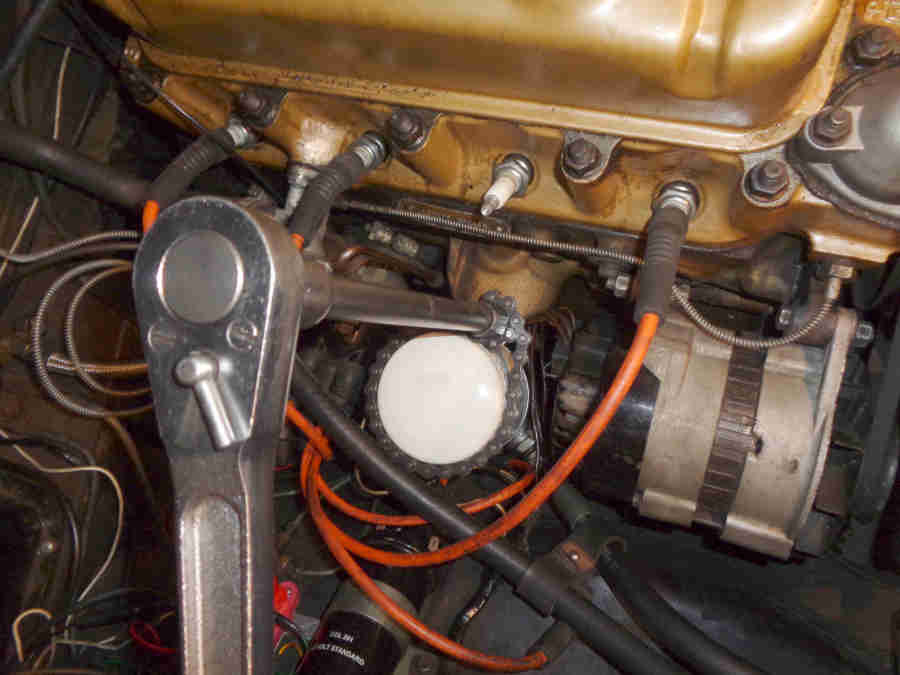 Subsequently I noticed a depression in the inner wing, free of paint and rust, which looks like the oil hose elbow has been rubbing or hitting it, even though I've never been aware of a knocking. The elbow is well clear of it now, but it also raises the question of just what angle the filter head should be wrt the block. At the moment it is angled slightly backwards, which puts it close to the distributor as it was before. At right-angles, or even slightly forwards, would give more clearance to that but put the elbow closer to the alt. However that could be compensated for by adjusting the angle of the elbow.