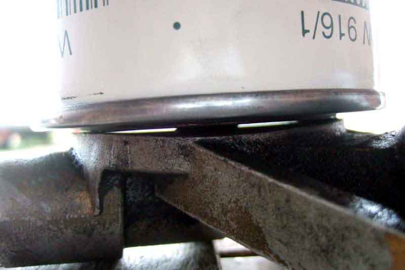 Any way, check the new filter head with a filter and as soon as it touches it is touching all the way round, so that should solve the problem. For good measure I run a whetstone round the flange that goes up into the groove on the crankcase until that shows clean metal all the way round.