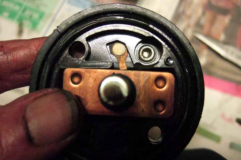 The coil boost contact is straightened and positioned so that the copper bar touches it and pushes it down just before it reaches the two studs: