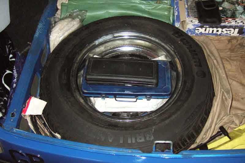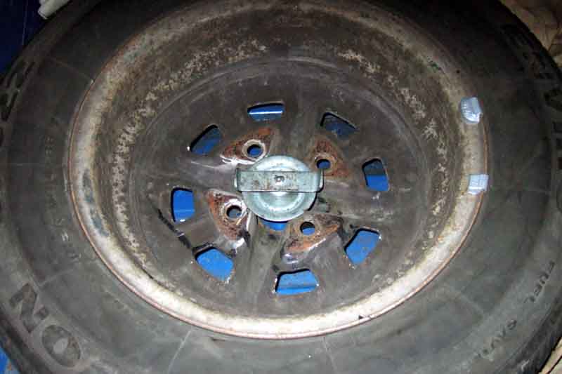 The Rostyle clamp length means that the wheel has to be stored outer face upwards, but it can also fit upside down without fouling the threaded boss in the boot floor: