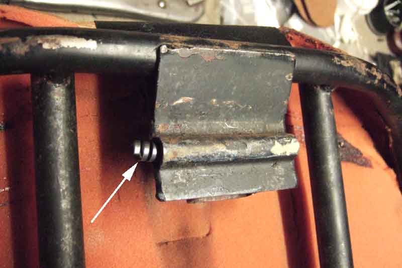 Vee's are quite different in that there is a plastic rod with a steel bar inside. The head restraint has to be withdrawn before this can be removed, but that was easier in this case, it just needed a hammer and wood drift to tap the clip at the end of the restraint tube up inside the seat frame tube, then it could be pulled out. It is easier to lift the seat out and back in with head restraints removed - if you can. However to do that in a GT means the seat-back has to be reclined, or for non-recliners the whole seat has to be tilted back after the four seat bolts have been removed.