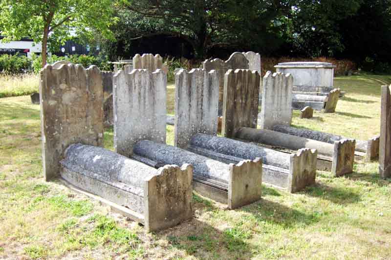 ... with some rather unusual grave markers, shaped a bit like mummies