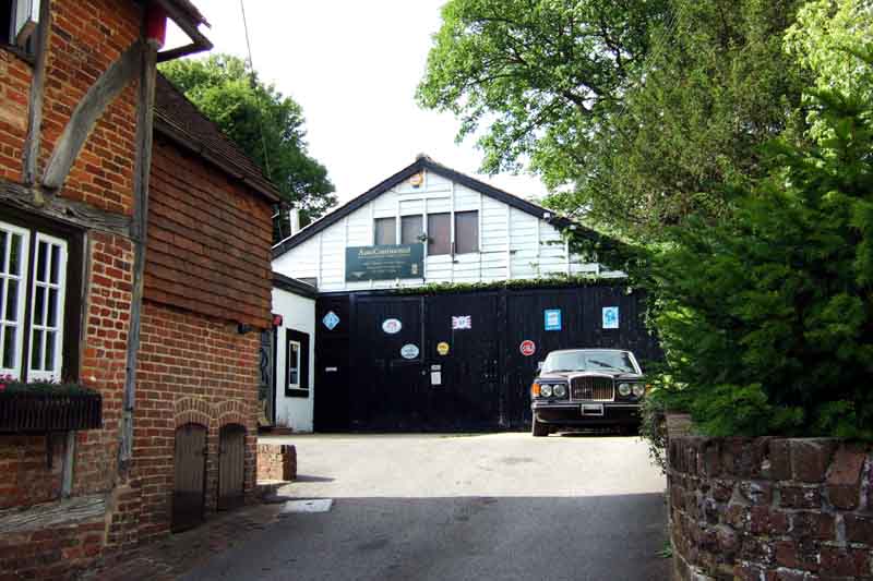 Rolls-Royce and Bentley garage tucked behind a cottage, a real old-world place