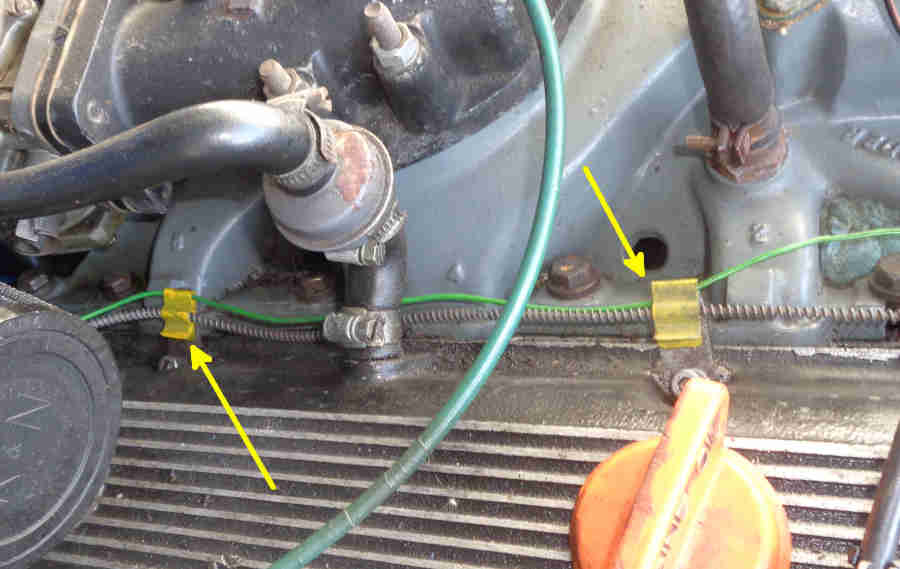 Another clip at the lower heater valve bolt (avoiding proximity to the spark plugs and risk of damage when working on them):