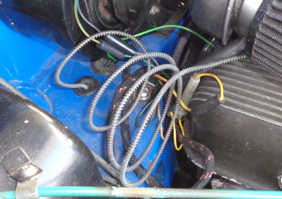 And through the bulkhead with surplus coiled in the same place as the 4-cylinder: