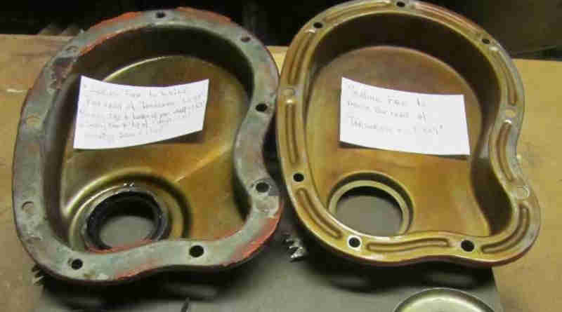 Timing covers - flat flange on MGA (left), ribbed on (most if not all) MGB: MGAGuru