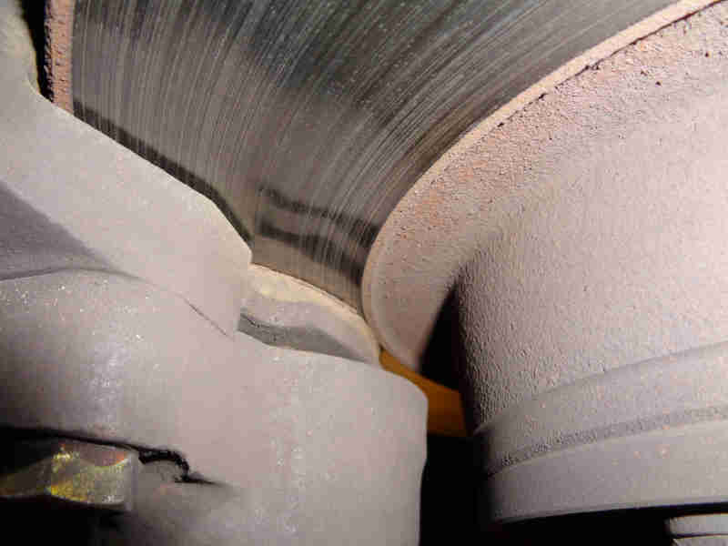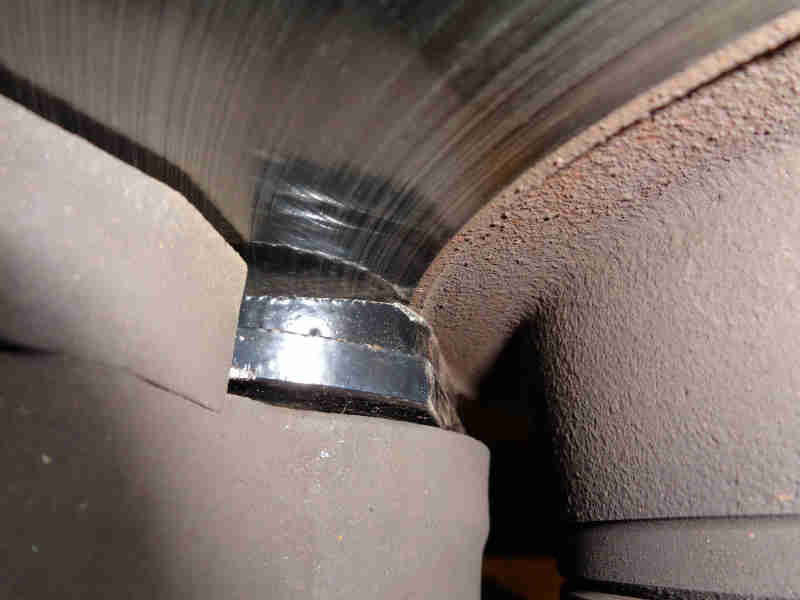 Whereas on the inner face all the friction surface is used. Some dismantling will be required to clean up that additional area on the disc when fitting V8 pads to 4-cylinder calipers for the first time - or new or skimmed discs, but it will result in imbalance between the two faces of the disc, which may have unwanted effects including warping: