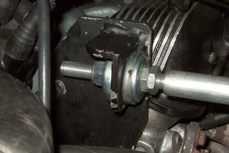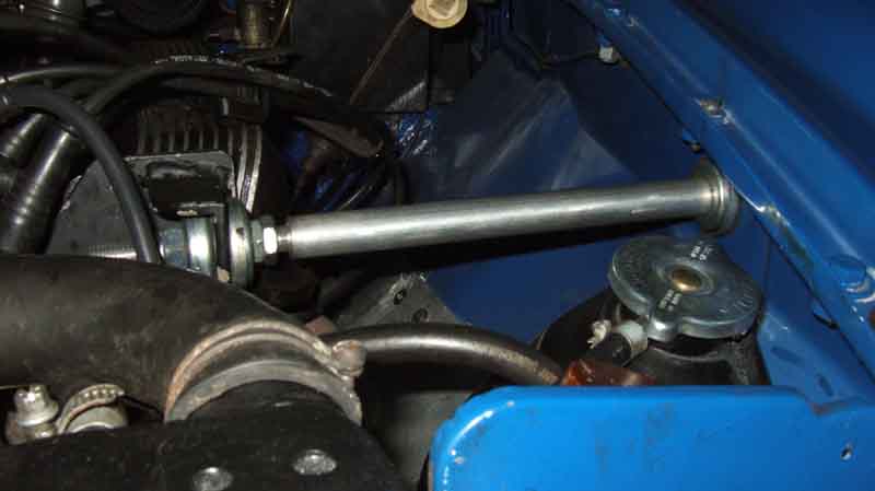 However it was only when writing this section and getting a photo of the steady as supplied from Clive's web site that I realised mine was installed the wrong way round i.e. with the adjuster nuts against the inner wing. I remember being aware when refitting it after the repaint that having them there was awkward, especially being ultra careful with the new paint. I wouldn't have completely dismantled that when removing the bar to get the engine and gearbox out, so I must have installed it that way to begin with, and Clive's people said they send them out loosely assembled. The bracket end has to be assembled before fitting - with the distributor in-situ at any rate, as you can't install the bare bar to the wing then fit the bracket to the bar.