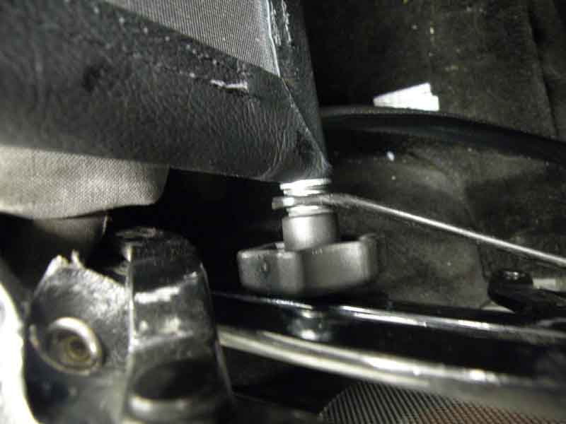 After the test I noticed that the brackets had tended to work their way out of the sockets a little. I didn't think it would come out altogether but neither did I want to risk it, so I drilled and tapped the tongues of my brackets for a cheese-headed screw, which I then ground off at an angle. This would enable the tongue to slide in without difficulty, then the high edge of the screw head would engage in a convenient hole that was already in the socket. To remove the bracket from the socket one has to pull against bungee tension to disengage the screw head from the hole before the tongue can come out of the socket, which isn't going to happen while on the road.